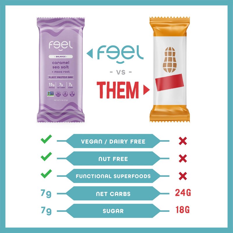 - CONVENIENCE ON-THE-GO: Need a convenient snack that can help you curb your appetite until your next meal? Stash an individual or even a 10-pack of Feel Bar protein bars in your car, office or travel bag for a sweet snack or breakfast on the go.