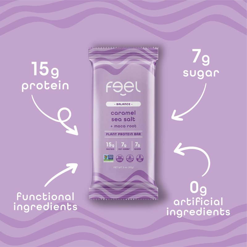 Feel Vegan Protein Bars | Caramel Sea Salt | Keto | Gluten Free | Organic | Maca | 15g Plant Protein | Low Carb | High Protein | Dairy Free | Low Sugar | Grain Free | Nut Free | Soy Free | Non GMO - (Caramel Sea Salt, 10 Pack)