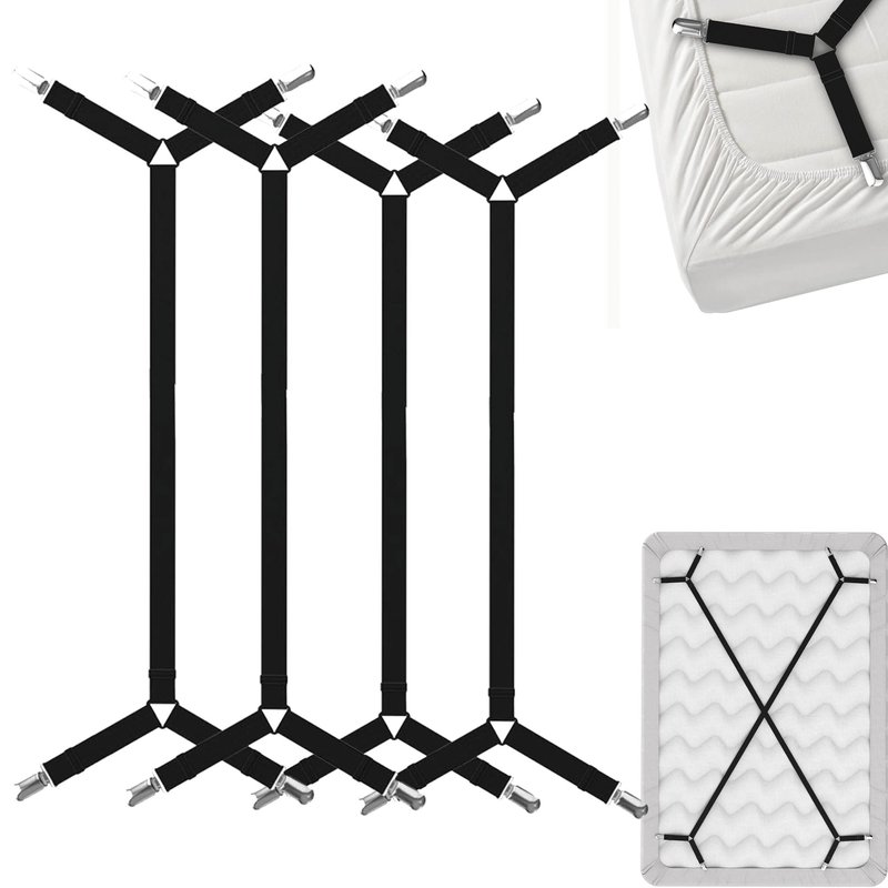 Do you hate loose sheets or crumpled and wrinkled sheets in the morning? FeelAtHome’s bed sheet clippers will secure your bed sheets to your mattress so that it will never come loose in the middle of the night while you are sleeping anymore!These bed sheet suspenders are suitable for use on all kinds of sheets, whether it’s fitted or flat sheet. Use them to keep your sheets tight and crisp all night long for greater comfort and just an overall better sleeping experience. WHAT SIZE SHEETS DOES THE BED SHEET FASTENERS GRIPPER WORK ON? The bed sheet fasteners are adjustable to fit all sheet sizes including Twin, Twin XL, Full, Full XL, Queen, King & even up to California King sheets. They only do not fit toddler or crib mattresses.CAN I USE THE BED SHEET FASTENERS WITHOUT HAVING TO LIFT THE MATTRESS UP? Definitely. The user-friendly design of the fasteners allows you to use it without having to lift the mattress up or flip it over. It is best to get another person to help you, though one person will be able to manage by his/herself too. HOW TO USE THE UNDER BED SHEET HOLDER?1. Start with any corner. Attach the clips to the corner of the mattress sheet.2. Slide the bed sheet strap diagonally underneath the mattress to the opposite corner of the Bed Sheet. 3. Again, attach the clips to the corner of the mattress sheet and tighten the adjustable buckle. Be careful not to overstretch it!4. Repeat Step 1 with the other bed sheet strap to tighten all four corners.