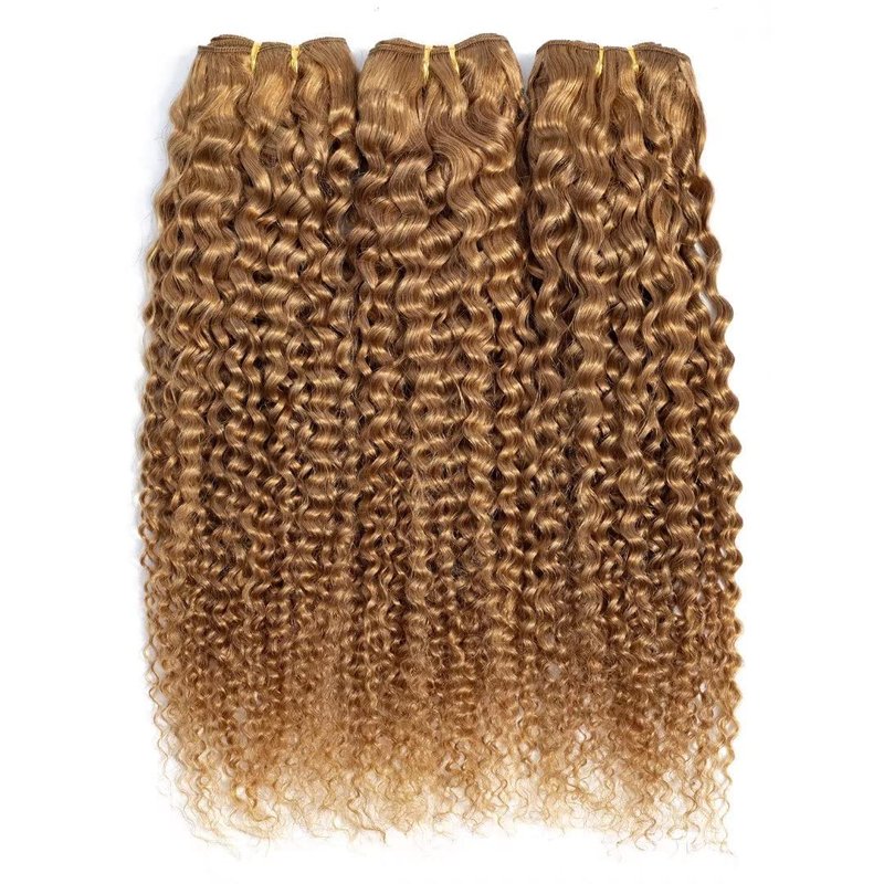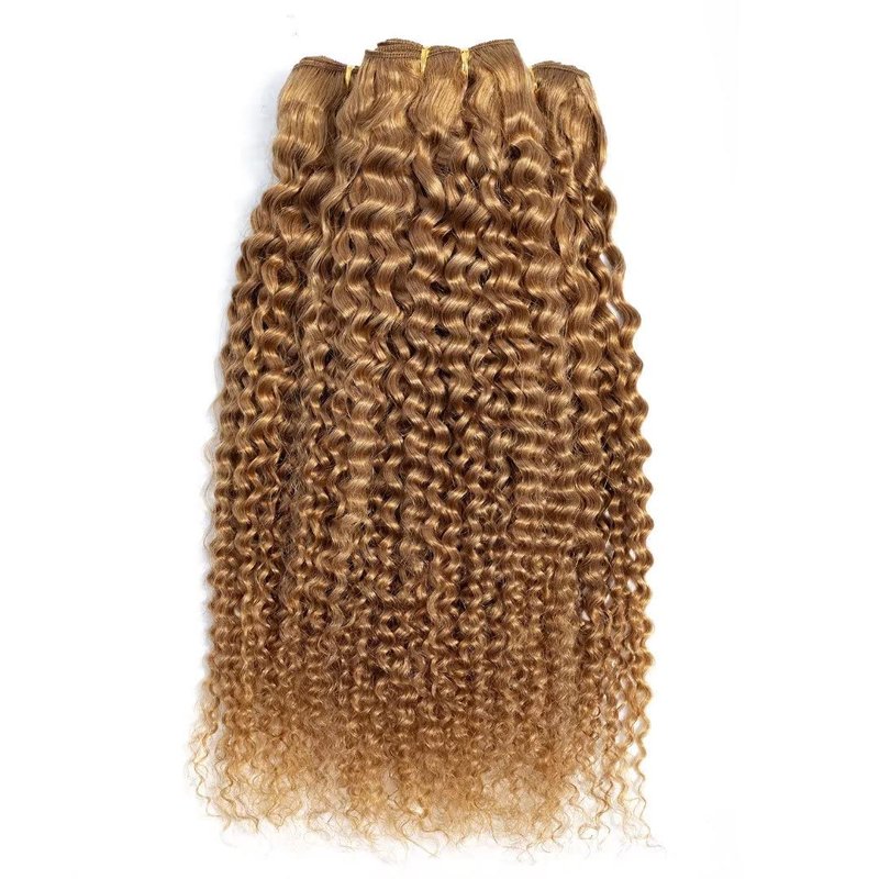 - Curly Human Hair Extension Color: Pure Color 27 Honey Blonde 100% Human Hair Extension Brazilian Virgin Water Wave Hair Can be straightened, curled, bleached, dyed and styled as your own hair.