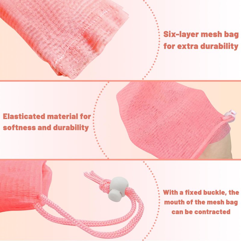 1.The soap sleeves are made of 6 layers of nylon material, which is durable, soft, smooth and comfortable to the touch, and skin-friendly.