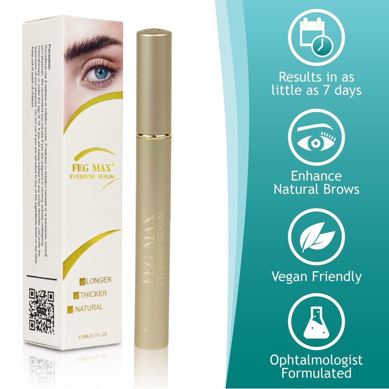 - Eyebrow Growth Serum For Women: With the FEG Max Eyebrow Serum, you can get seductive looking brows in just 4-6 weeks. Each 6ml bottle lasts approximately 3 months, providing plenty of brow growth and strengthening to reach exactly how full you want your eyebrows.