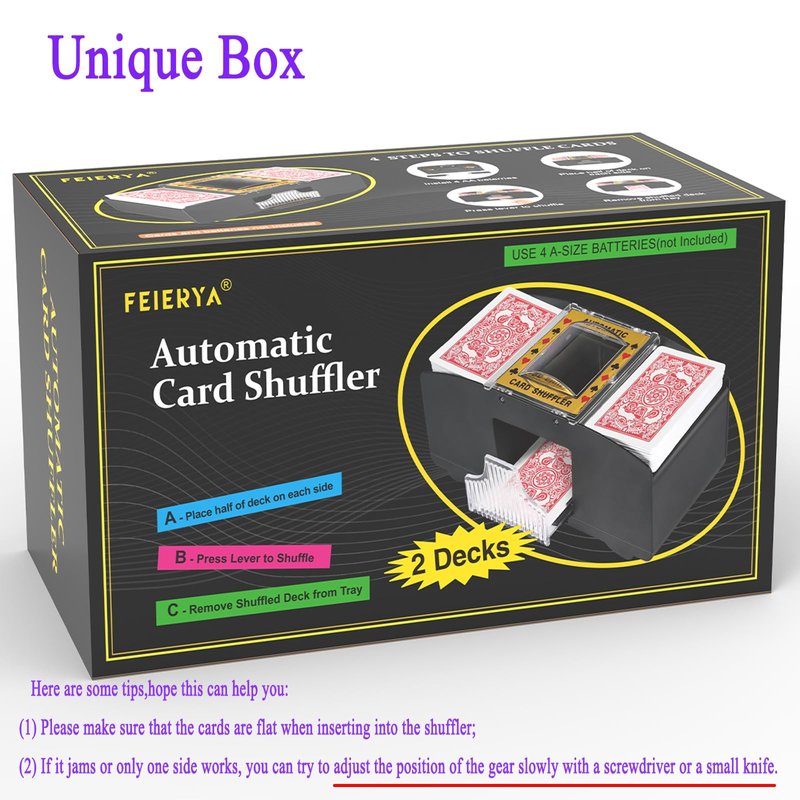 - 【Card shuffler 2 deck】:FEIERYA Card shuffler battery operated,easy to use.Elderly,young people,children can use ,help you shuffle 1-2 deck playing cards in seconds,save your time