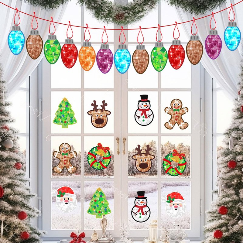 - Classic Christmas Theme Design: our Christmas activity kit adopt classic Christmas elements design, including snowman, snowflakes, Christmas tree, reindeer, gingerbread man, Christmas wreath and colorful lights, and which will be enhanced by stained glass effect paper the charming beauty and visual appeal, become a real work of art