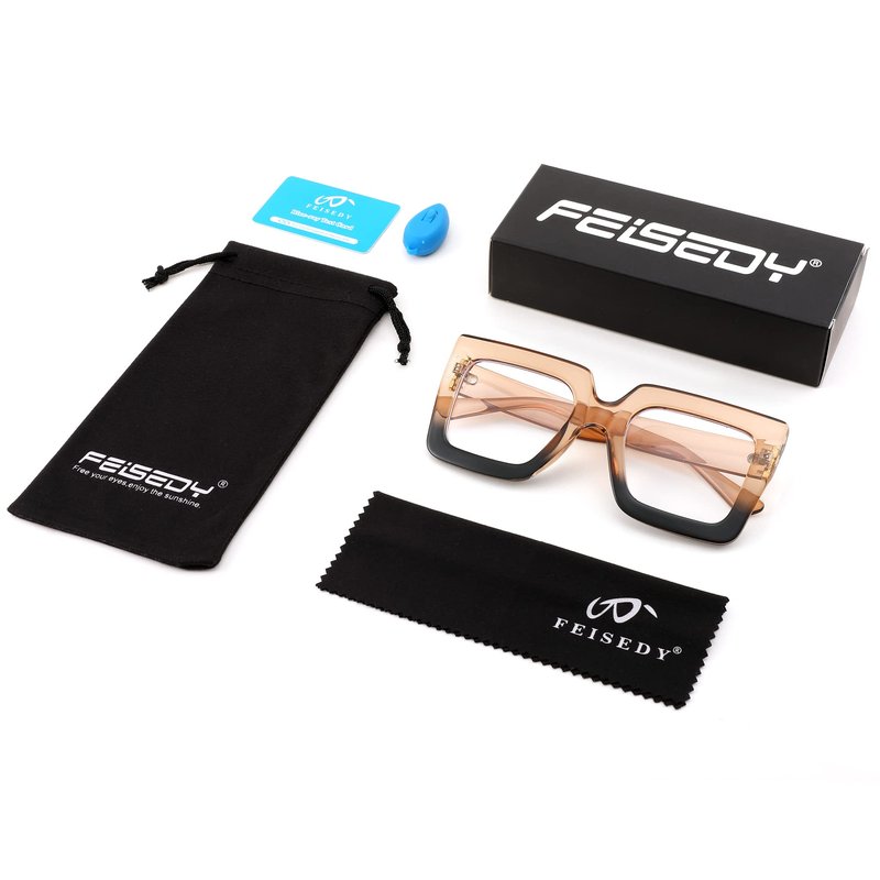 FEISEDY Fashion Oversized Blue Light Glasses for Women Anti Fatigue Thick Square Computer Eyewear B2381