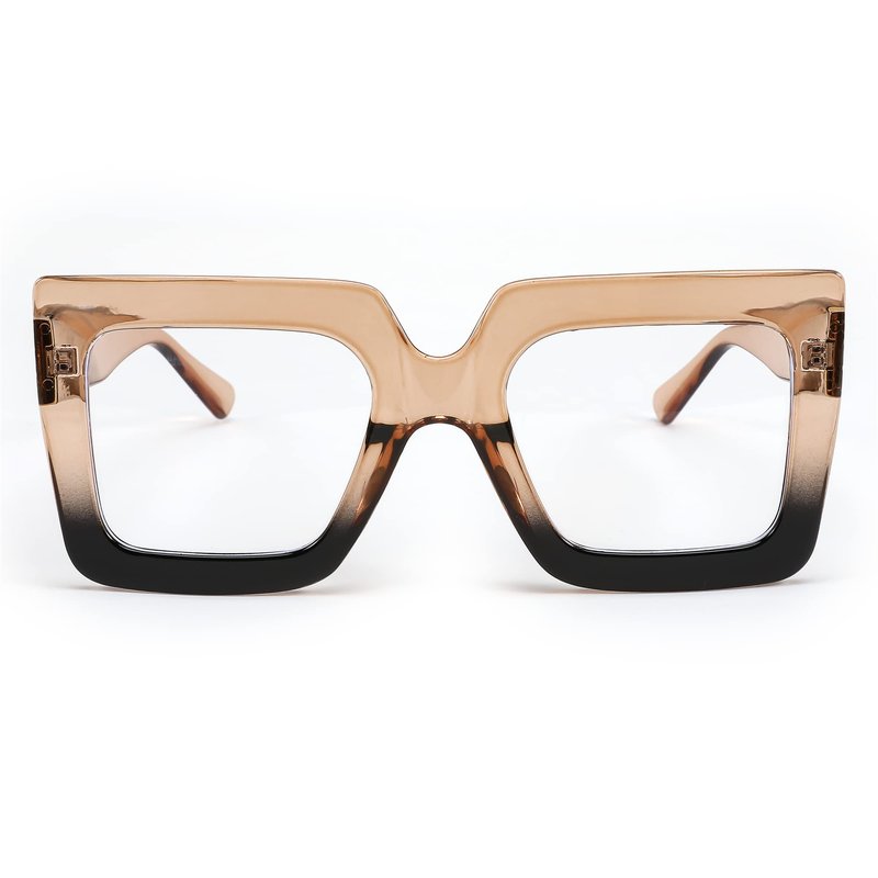 - Unique design: Fashion Oversized Square Glasses Style Nice quality Frame Practical and Fashion Design, the shape of your face modified by the big square thick frame. Two color splicing eyeglass frame reflects novelty, make you more unique and noble.