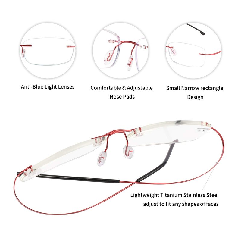 FEISEDY Lightweight Rimless Titanium Stainless Steel Anti-Blue Light Reading Glasses B2686