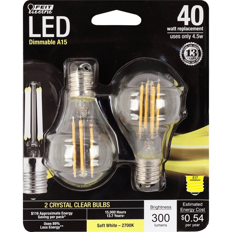 Feit Electric BPA1540N/827/LED/2 Decorative Clear Glass Filament LED Dimmable 40W Equivalent Classic A15 Light Bulb (Pack of 2), Soft White