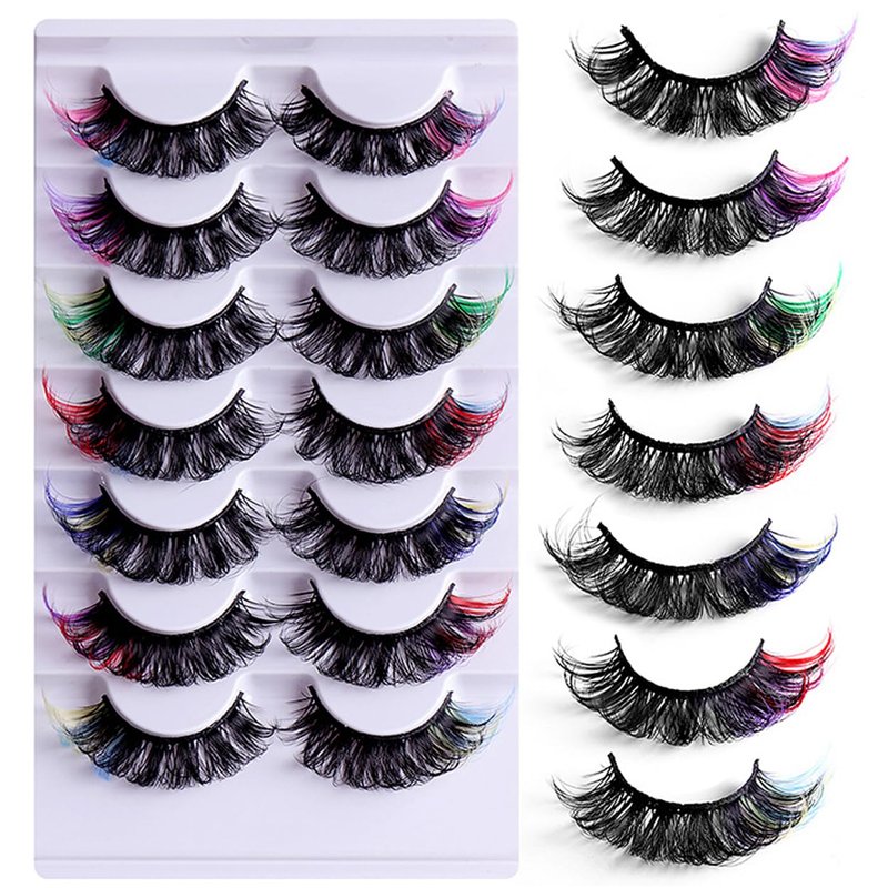 FEITA Colored Lashes 20mm Strip False Eyelashes Kit with Color Fluffy 8D Thick Volume Lash Tint Curly Rainbow Fake Eye Lashes 7 Pairs Multi Pack