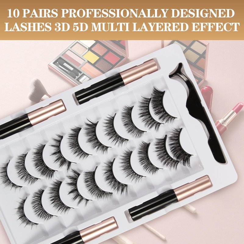 - [SAVE YOUR MONEY]: No more need to waste a plenty of time and money go to the beauty parlour to make eyelashes. We offer 10 pairs difference styles reusable magnetic eyelashes and 4 tubes magnetic eyeliner which means you can experience the benefits of lashes and eyeliner liquid even longer than others eyelash sets. The eyeliner is made of natural ingredients, no harm to your eyes or skin, you can also use it as normal liquid eyeliner.