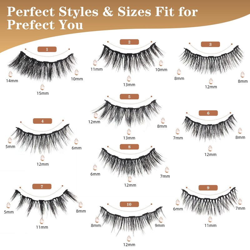 - [MAGNETIC EYELASHES]: Our magnetic eyelashes are made of ultra-soft handcrafted fiber, it come in different length from shortest 5mm to longest 16mm. 5 strong magnets on each false lashes strip, high-strength tiny magnets makes eyelashes highly curved give you that natural look and all-day long lasting.