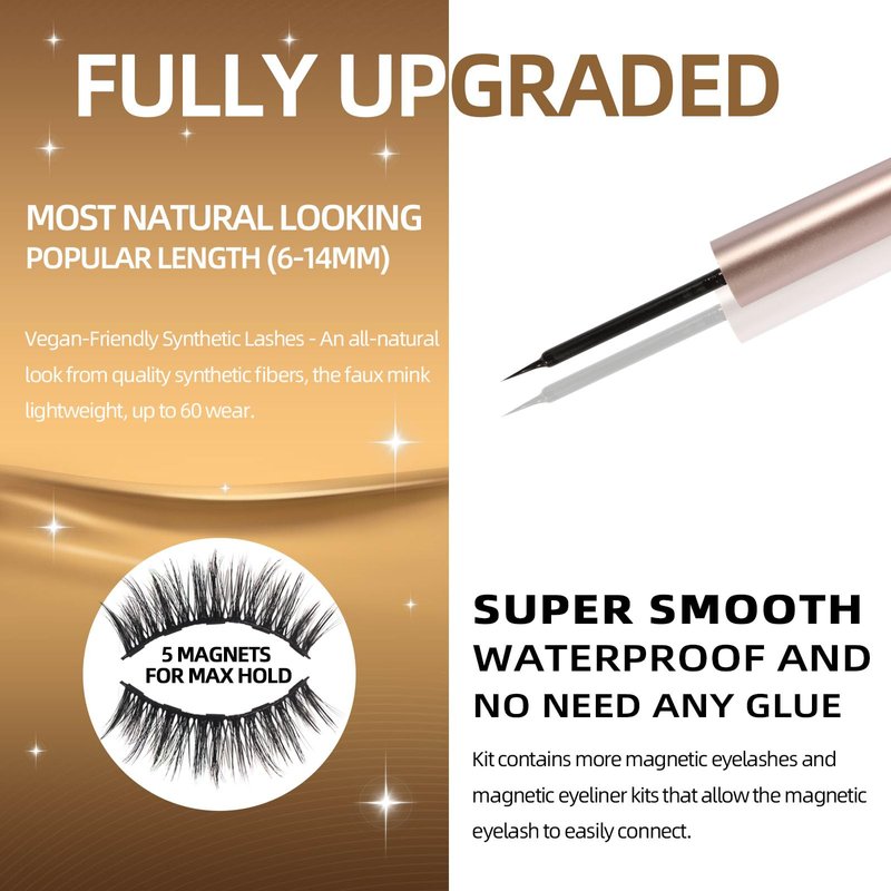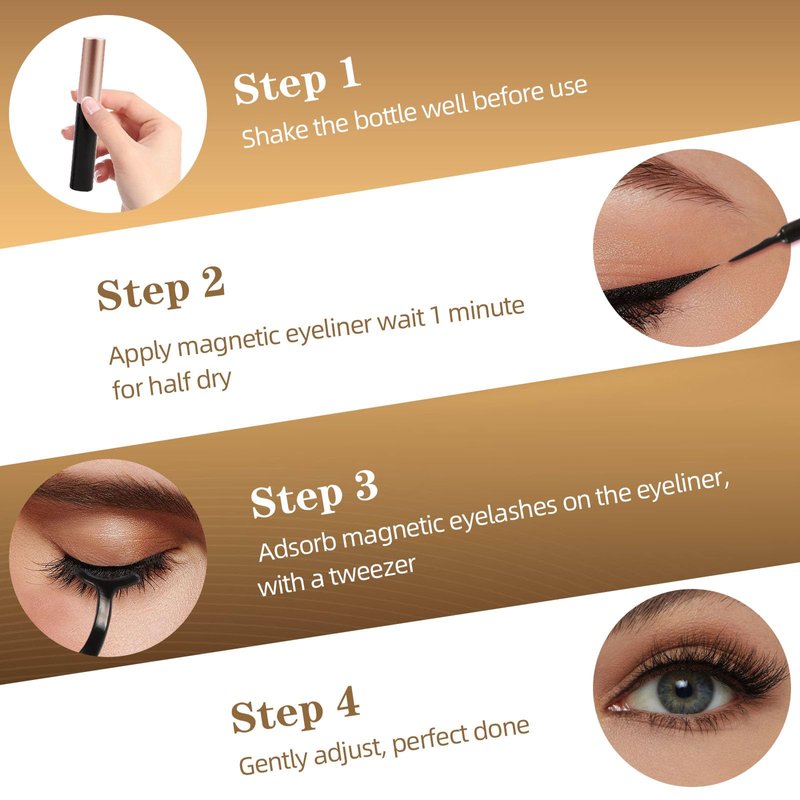 - [UPGRADED MAGNETIC EYELINER]: The package comes with 4 tubes special eyeliner, it have ultra-fine magnetic particles inside that allow the magnetic eyelash to easily attach and long-lasting. The upgraded eyeliner is thick, smooth, containing more magnetic powder, no preservatives, it’s also waterproof and smudge-resistant.