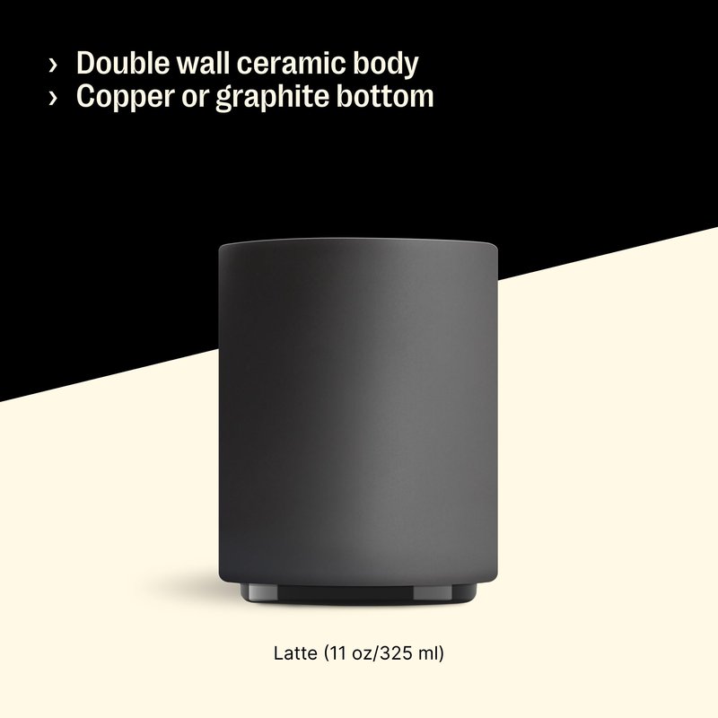 Fellow Monty Milk Art Cups - Double Wall Ceramic Latte Mug, Matte Black with Graphite Base, 11 oz Cup
