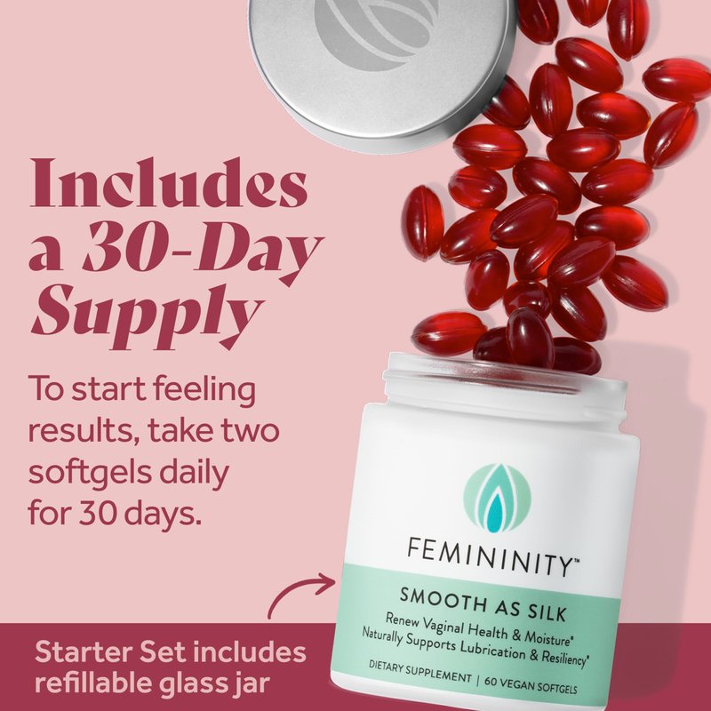 - GET FLIRTY IN THIRTY ;) – Real glow ups take solid beauty routines. Take two softgels daily for thirty days and get naturally lubricated again. Some Femininity customers tell us they don’t really have dryness but just take it for a bedroom boost.