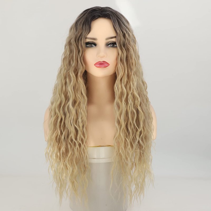 - Hairstyle: 24 inch middle part long curly wig, ombre honey blonde with dark roots. A good hairstyle can easily change your looking, you can get tons of compliments with this blond curl