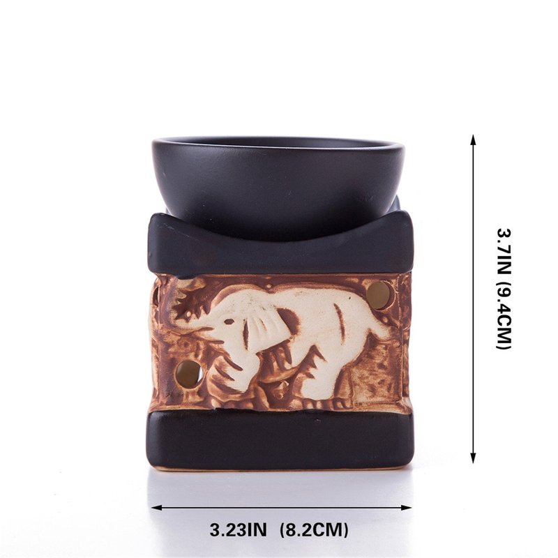 Place scented oil in the top and burn a tea light candle on the bottom, instantly refresh your mind. Enjoy and relax yourself. A unique ceramic essential oil burner. Perfect decor item for your home. Pleasant aroma and relaxing light revitalize your body and mind. Create a refreshing atmosphere for your family, partner & guests. Dimensions Approx: H4" x W3.25" x D3.25". How to use: 1. Put a spoon of water & 5 - 10 drops of the oil into the bowl 2. Put a tea light into the body below the bowl. 3. Let the tea light warm the oil/water mixture to spread fragrance. NOTE: Tea lights usually burn out in 2.5 hours. Oil/water mixture may run out in 2 hours. You may need to add some oil & water when using. Oil and candle NOT included