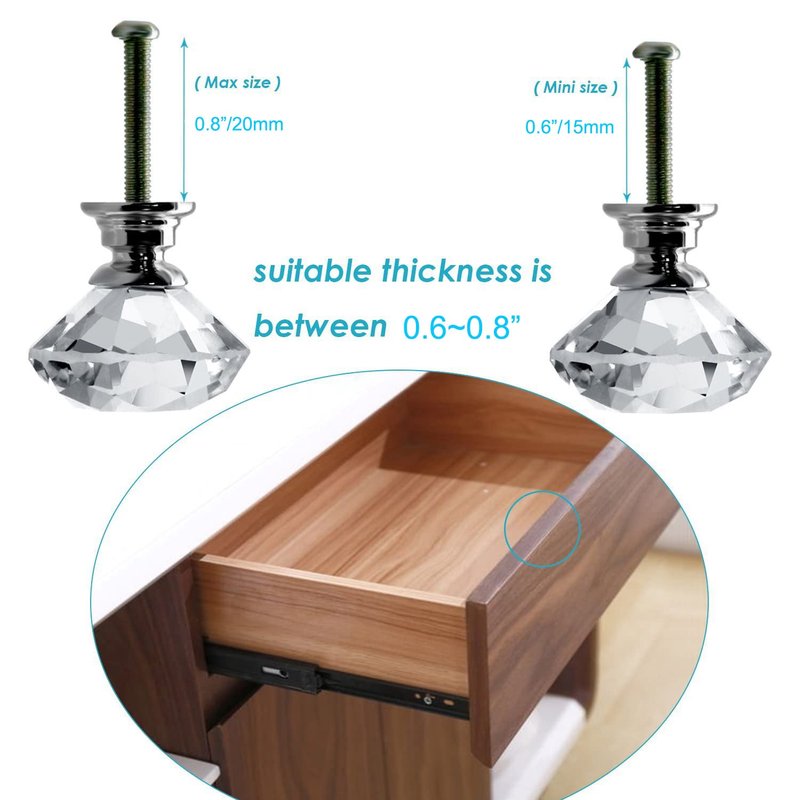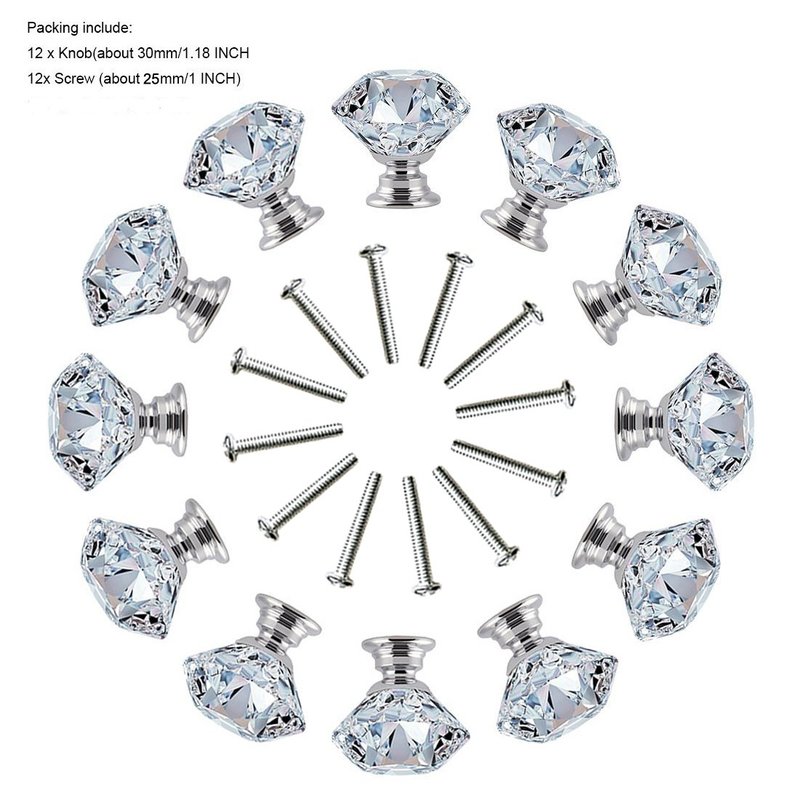 Quantity: 12pcs Crystal Glass Knob and 12pcs Screw