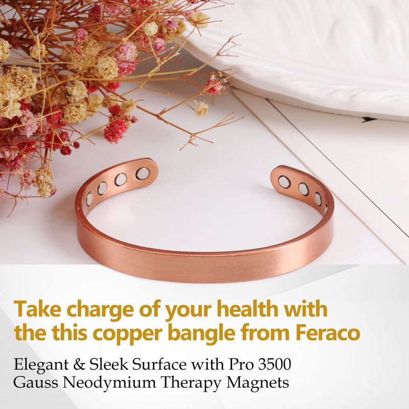 Feraco 2 Pcs Copper Magnetic Bracelet for Women Men,Sleek Magnetic Bracelet with 99.9% Pure Copper,Cuff Bangle with Gift Box,Gifts for women men.INTERNAL INJURY HAZARD:Keep away from All CHILDREN,Swallowed magnets can damage internal organs and have resulted in DEATH and SERIOUS INJURIES.