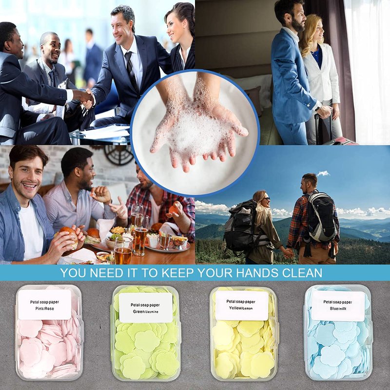 - 400pcs Soap Sheets : We provide you with 4 boxes of soap paper tablets, each with 100 tablets. There are scents of jasmine, rose, lemon and milk respectively. Easy to carry and small in size, allowing you to keep your hands clean anytime, anywhere.