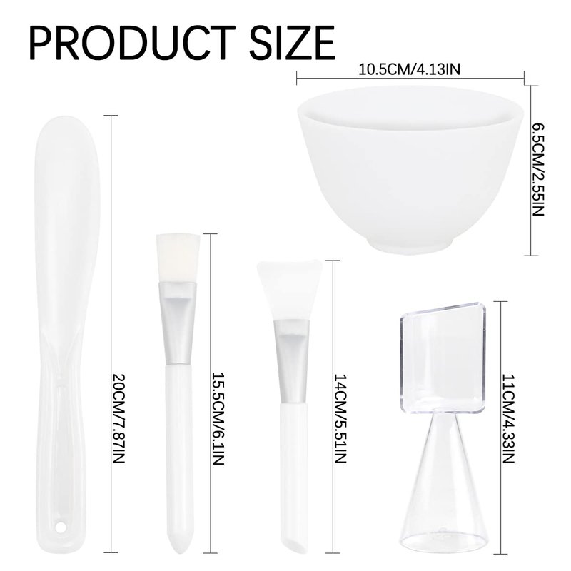 - Silicone Mask Bowl Set: The whole set of mask bowl consists of silicone bowl, stirring stick, applicator stick, measuring spoon and brush respectively. The size of the silicone mask bowl is 3.93*2.67 inches and is suitable for clay mask, mixing mask, etc.