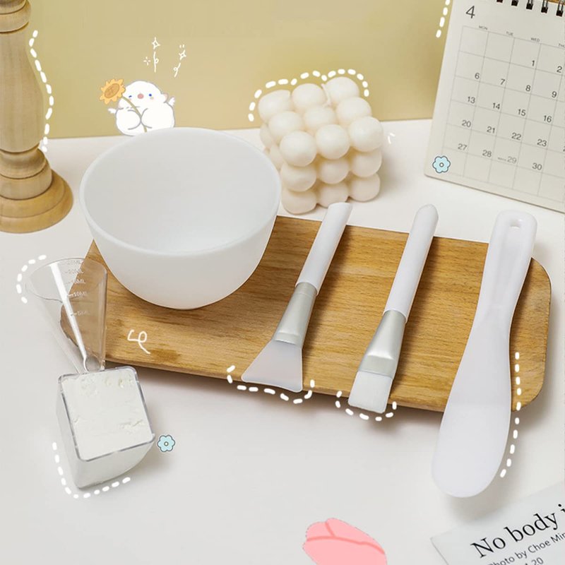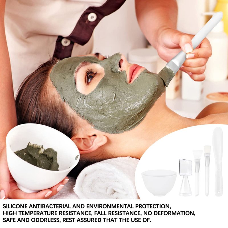 5Pcs Diy Face Mixing Bowl Facial Mud Bowl Silicone Facemask Bowl Cosmetic Beauty Tool, Microwavable Silicone - Professional Spa Facial Mask Mixing Bowl for Home Salon Spa Face Skin Applicator Bowl (White) Features 1. Made of silicone, soft and flexible. 2. This silicone bowl is resistant to high temperature, drop and not easily deformed. 3. Suitable for personal home use or professional beauty salon use. 4.Microwavable and dishwasher safe, Heat resistant up to 446°F/230°C Specification Color: White. Material: Silicone. Size: about 3.93*2.67 inches Package Including 1 x medium bowl 1 x stirring stick 1 x applicator stick 1 xmeasuring spoon 1 x brush respectively In addition to mixing masks, it can also be used as a bowl for ingredients such as spices. Reasonable size, can hold a small amount of ingredients, such as salt, spices, honey, baking soda.