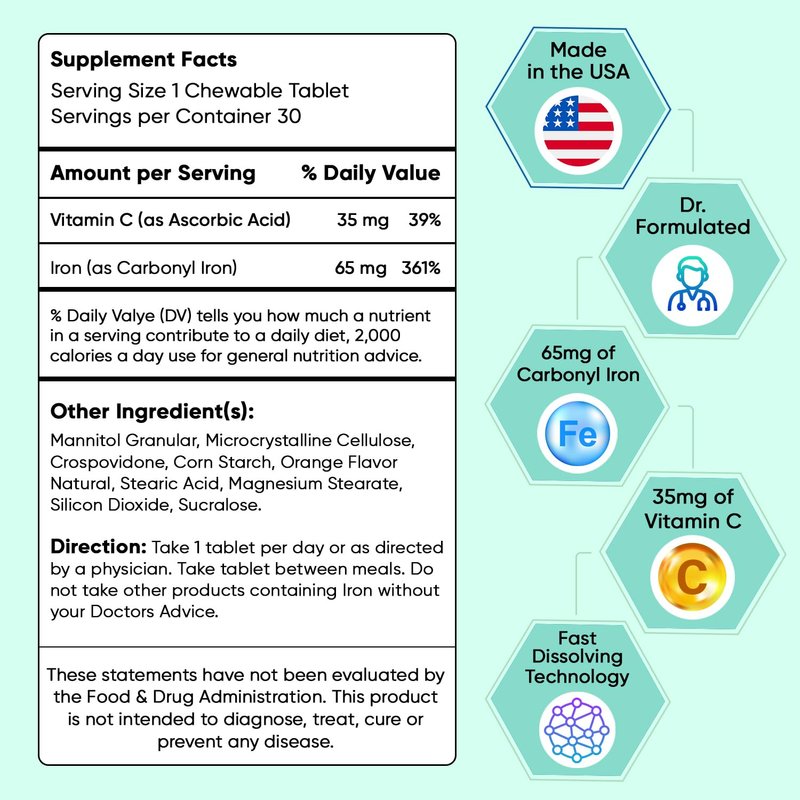 Maximum Concentration Fast Dissolving Iron Supplement for Women and Men
