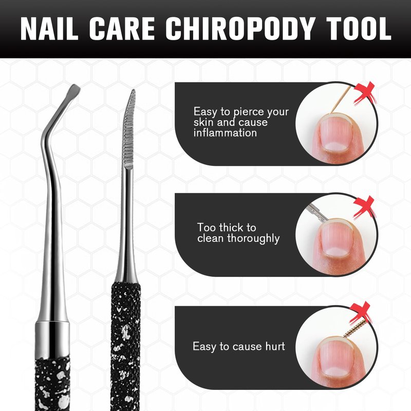 - 【Nail Lifter and File】Our specially designed ingrown toenail tool set offers a toenail file and toenail lifter for treating painful ingrown nails. Each tool has two ends,shaped differently to conform to your specific condition.