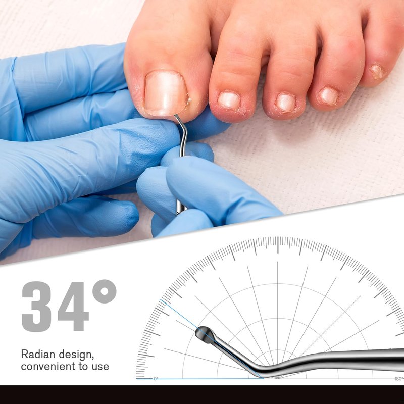 - 【Ingrown toenail lifter】 Lift ingrown part away from the skin. Not only a lifter, also an amazing nail cleaner. Double curved ends are mirrors for both left and right foot. With little spoons on it curved end’s that make it gets under even the closest toe nail to grab even the smallest bits of debris