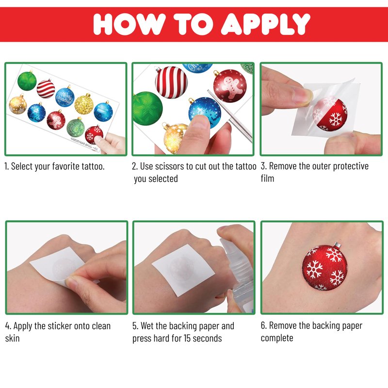 - 🎉[PERFECT PRESENTS FOR CHRISTMAS ORNAMENTS BALL CELEBRATIONS]: Infuse holiday cheer into your celebrations with these Christmas ornament ball tattoos. Decorate using these tattoos and receive numerous compliments for your themed event setup. These holiday tattoos serve as delightful tokens that you shouldn't overlook for your special occasion.