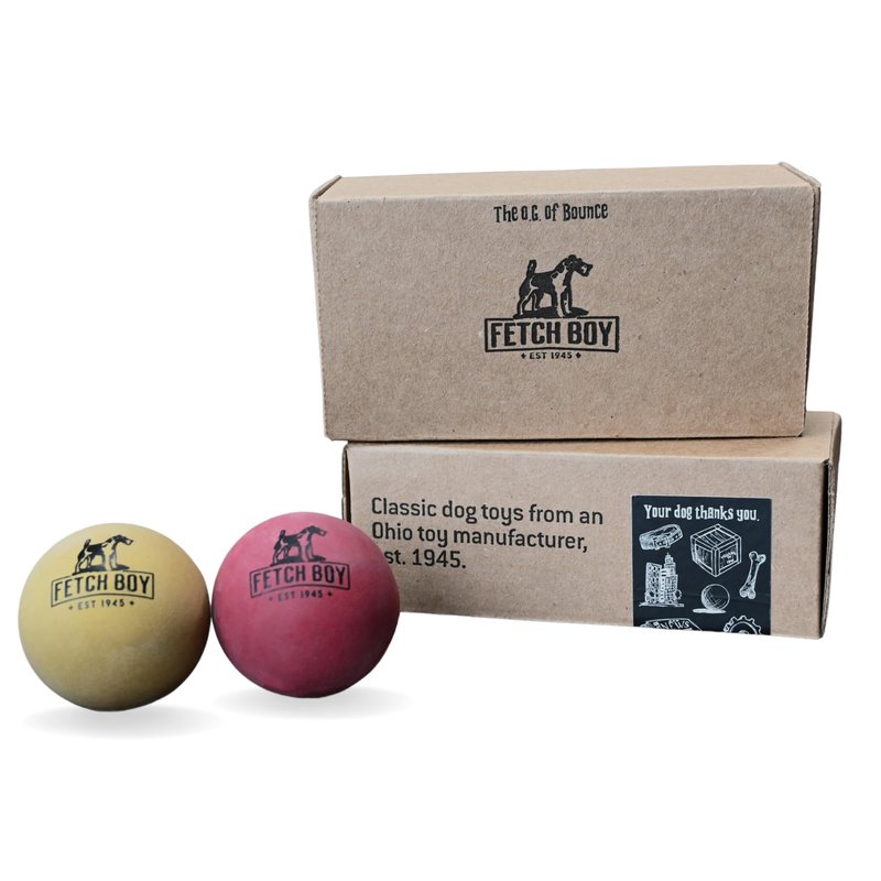 Fetch Boy The O.G. of Bounce Solid Sponge Rubber Dog Ball, Made in USA, 2.5 inches, Medium Breeds That Fetch, 2 Pack Gift Box
