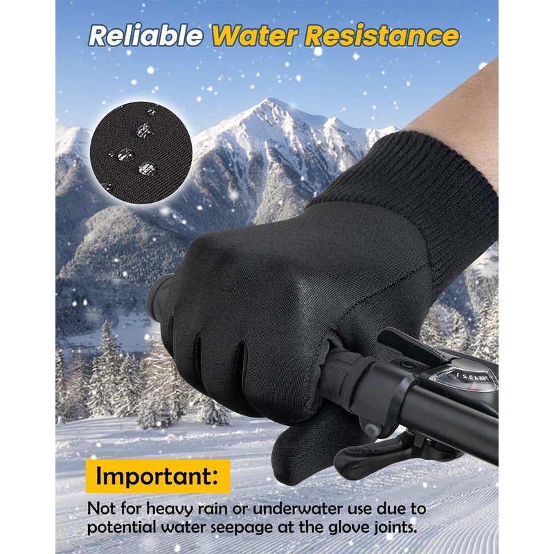 - Although the winter gloves are made of water resistant material, there may be minimal seepage at the seams. They are not suitable for use underwater or in heavy rain.