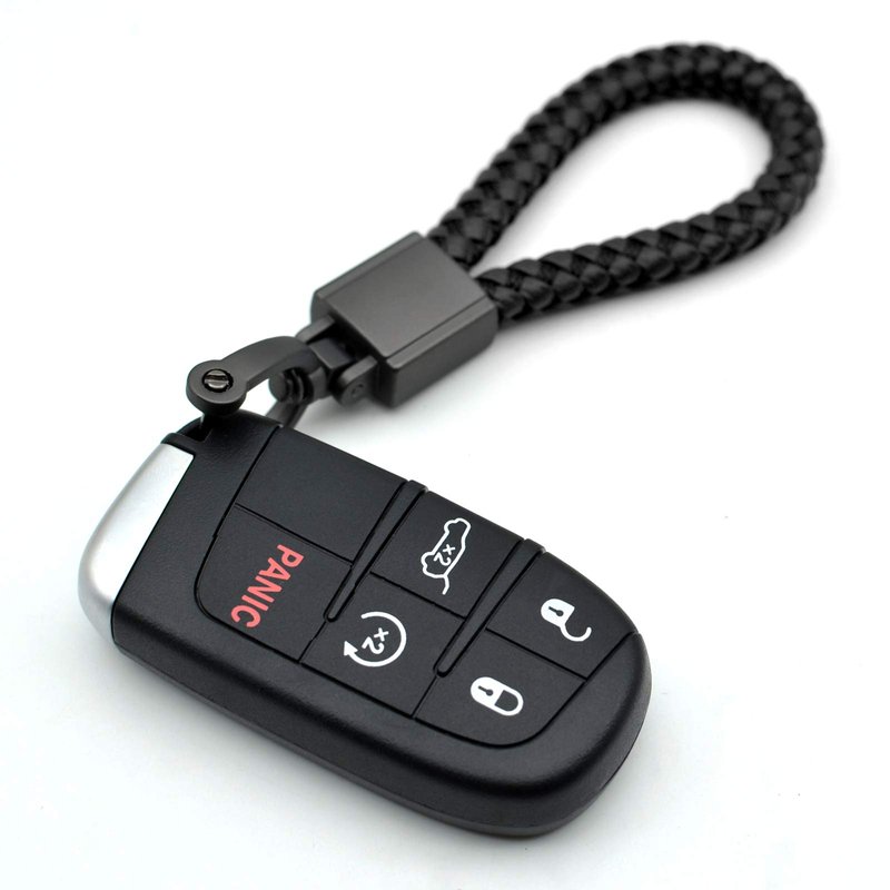 - Zinc Alloy Leather Woven - This car key chain is made of premium microfiber leather with zinc alloy metal key ring, light and sturdy, that will not rust or fade easily. Leather grip strap keychain with a clear texture enhances your car fob a luxurious appearance.