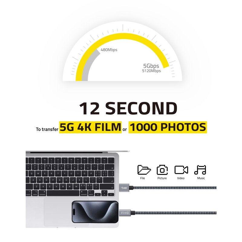 - 【High Speed USB 3.0 Cable & QC 3.0 3A Fast Charging 】FHG usb 3.0 high speed data transfer cable can transfer 5G 4K film or 1000 photos in 12 second.Safely QC 3.0 15W(3A) Charge your phone from 12% to 88% in just 35 minutes.It extends the battery life while greatly helping you save time both in data transfer and charging./(Charging tests on the Samsung Galaxy S21 by LaunchWonder Labs showed that it took only 35 minutes to charge from 12% to 88%)