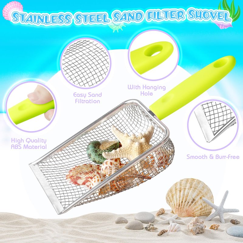 - 【QUALITY MATERIALS,SAFE AND DURABLE】The shell scooper is made of durable stainless steel, delicate and smooth, with proper mesh density for easy cleaning after use, as well as a plastic handle for comfort and non-slip. The beach shovel is also made of high quality materials, sturdy and durable, not easy to fade or break to withstand a lot of digging work