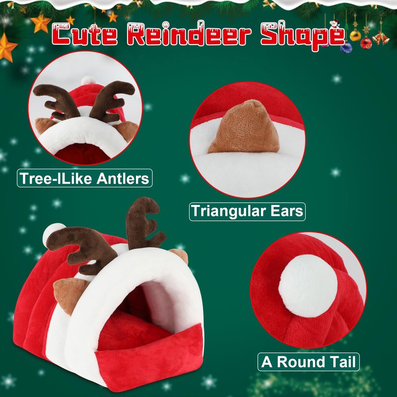 - 【Cute Rreindeer Shap for Cheer Christmas】Merry Christmas, spend a perfect festive with our beloved pets! The warm small animal beds cave looks like a red reindeer, with big cute antlers, tail and ears. This cute reindeer shapes This cute reindeer shapes with vibrant red color makes people feel happy and festive, create rich Christmas ambiance to pet habitat. Gift your furry pals with this warm and comfy hideout, and you'll both enjoy the added Christmas spirit.