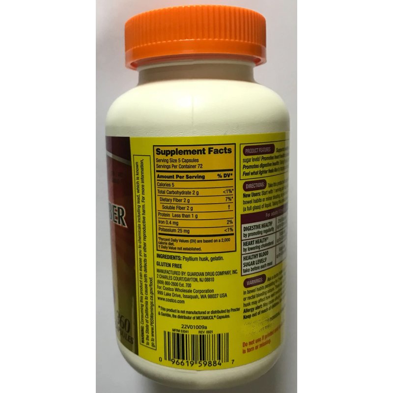 Fiber Capsules Kirkland Therapy for Regularity/Fiber Supplement, 360 capsules - Compare to the Active Ingredient in Metamucil Capsules