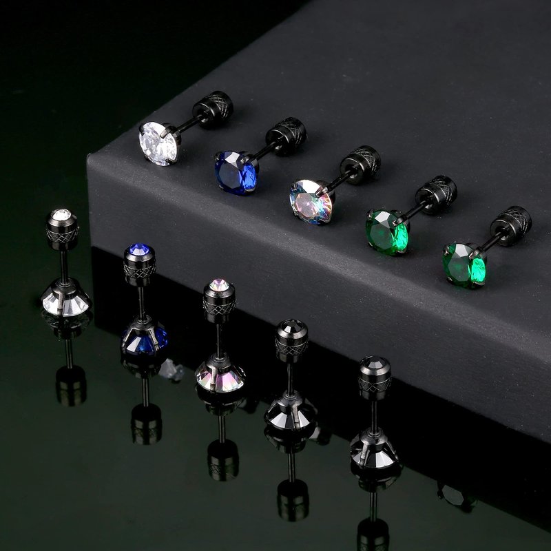 - 【PACK OF CZ STUD】One Order Includes 5 Pairs Of Screw Back Earrings. Silver, Black, Round CZ And Square CZ Give You More Choices. The Sparkling 5A+CZ Inlay Makes You More Attractive.