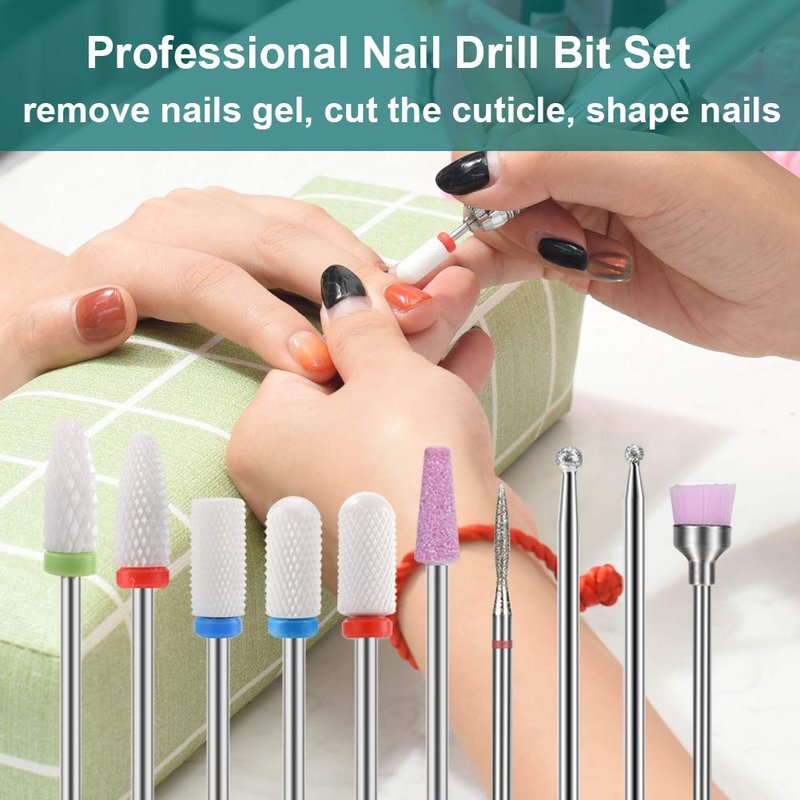 • 【Professional Nail Drill Bits Set】Include 6pcs ceramic drill bits, 3pcs diamond carbide bits, 1pcs brush bit. This kit includes almost all the nail drill tools that you may need for nail art. Suitable for professional manicurist or nail art beginners.