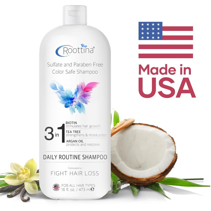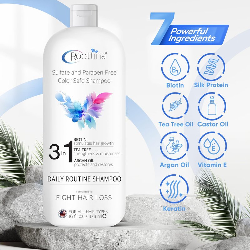 - ADVANCED HAIR LOSS SUPPORT -- Roottina Daily Routine Shampoo incorporates cutting-edge DHT blockers to effectively combat hair loss. Enriched with Biotin, Tea Tree, Argan Oil, and other essential oils.