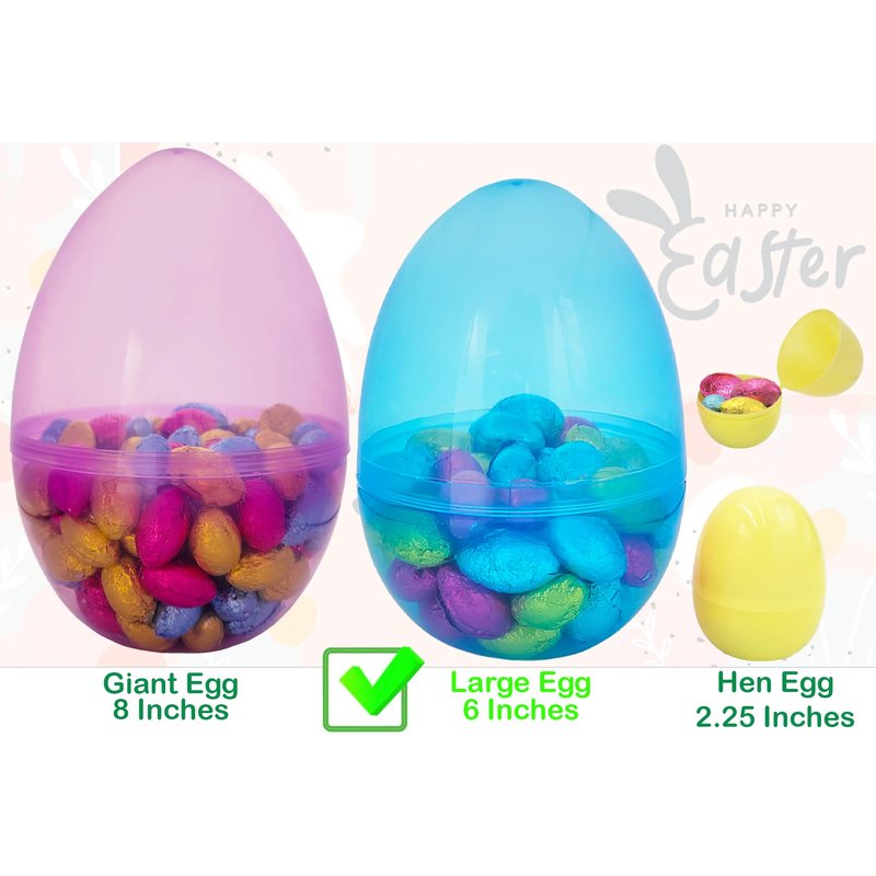 - 6 Pack of Giant Eggs: Includes 6 large 6 inch plastic eggs for plenty of Easter fun