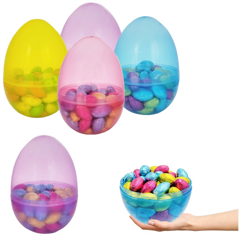 The Dreidel Company Jumbo Translucent Fillable Easter Eggs Colorful Bright Plastic Easter Eggs, Stands Upright, Perfect For Easter Egg Hunt, Surprise Egg, Easter Hunt, Assorted Colors, 8" Giant Fillable Eggs These Colorful Bright Plastic Fillable Easter Eggs are the Hit of every Party. Detach the egg halves to Fill them up with a Surprise for your Little One. Stands Upright. Fill These Cute Easter Eggs With Candies, Chocolates And Toys And Give To Children As Holiday Gifts Or Party Favors. The Jumbo Fillable Easter Eggs will add Fun and Atmosphere to your party that will leave good memories to all your guests! They are wonderful gifts for Birthday Parties, Carnival Prizes, Classroom Rewards, Goodie bag Fillers and much more! These Jumbo Fillable Easter Eggs are made from Plastic and are 8" Inches.