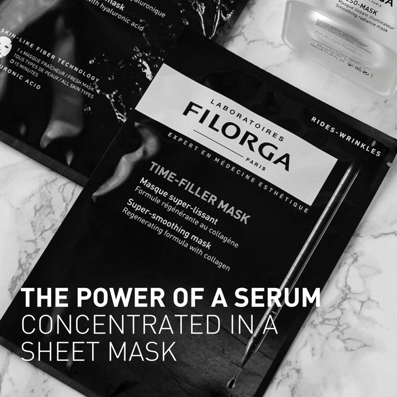 Filorga Time-Filler Super Smoothing Face Mask, Sheet Mask Soaked in Renewing Serum with Collagen and Polysaccharides For Visibly Smoother Skin in 15 Minutes, Hydrating Facial Treatment, .67 fl. oz.