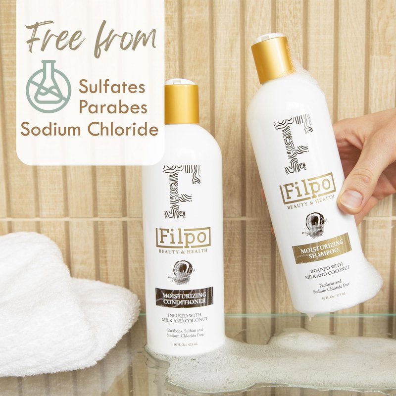 - GENTLE CLEANSING: Cleanse your hair gently, without stripping it of all its natural oils with our Filpo coconut milk shampoo. Indulge in its luxurious, creamy, moisturizing foam whilst you breathe in its luscious fragrance. It's the ultimate sensory experience that will instantly transport you to a tropical paradise!