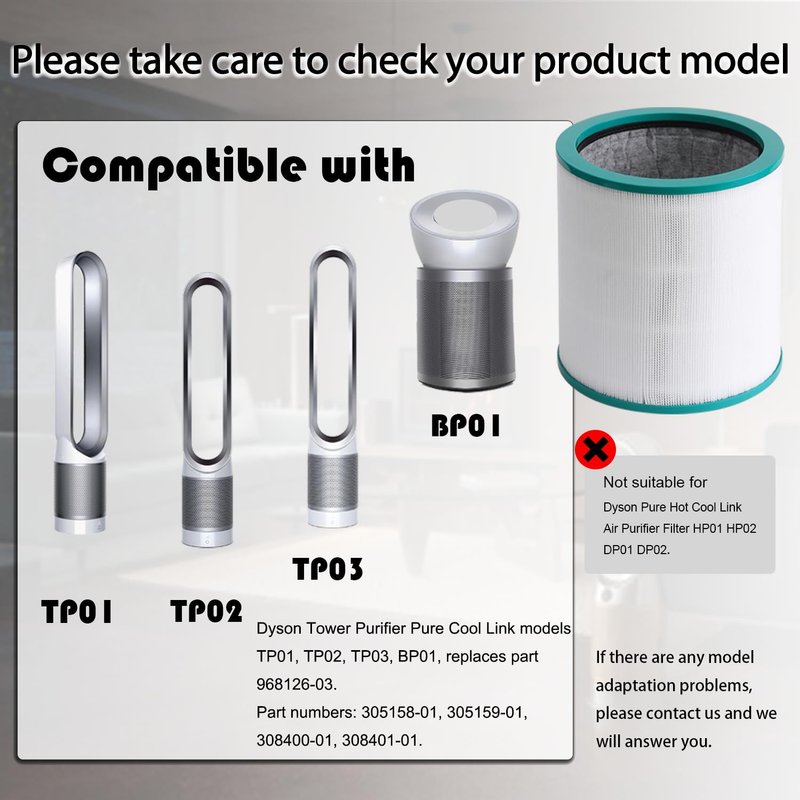 - Replacement filters is Compatible with Dyson TP02 US Sm/Nk TP02 US Nk/Nk, Dyson tower purifiers and Dyson Pure Cool Link. part numbers: 305158-01, 305159-01, 308400-01, 308401-01