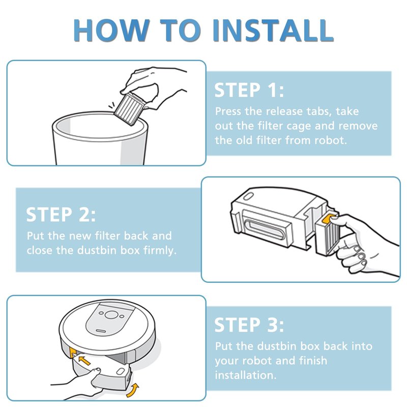 - 【HIGH PERFORMANCE】: High efficiency i3 filter replacements help attaching 99.9% of dust, dirty, pet hair, and small particles as small as 0.1 microns. To keep your Robot Vacuum running at peak performance, it's recommended to clean the roomba filter replacements every few weeks and replace every two months.
