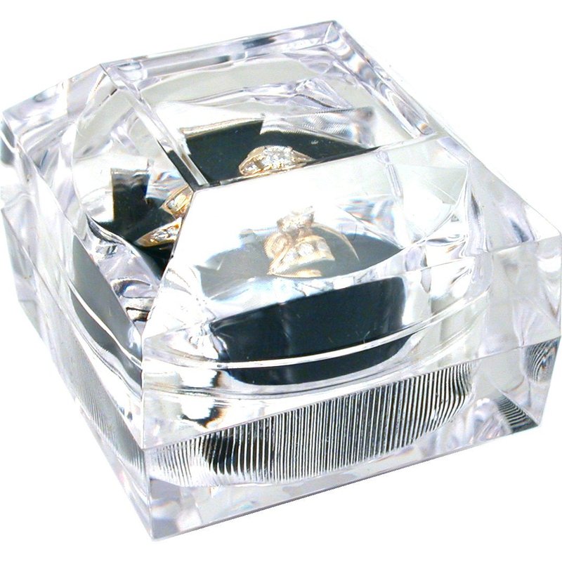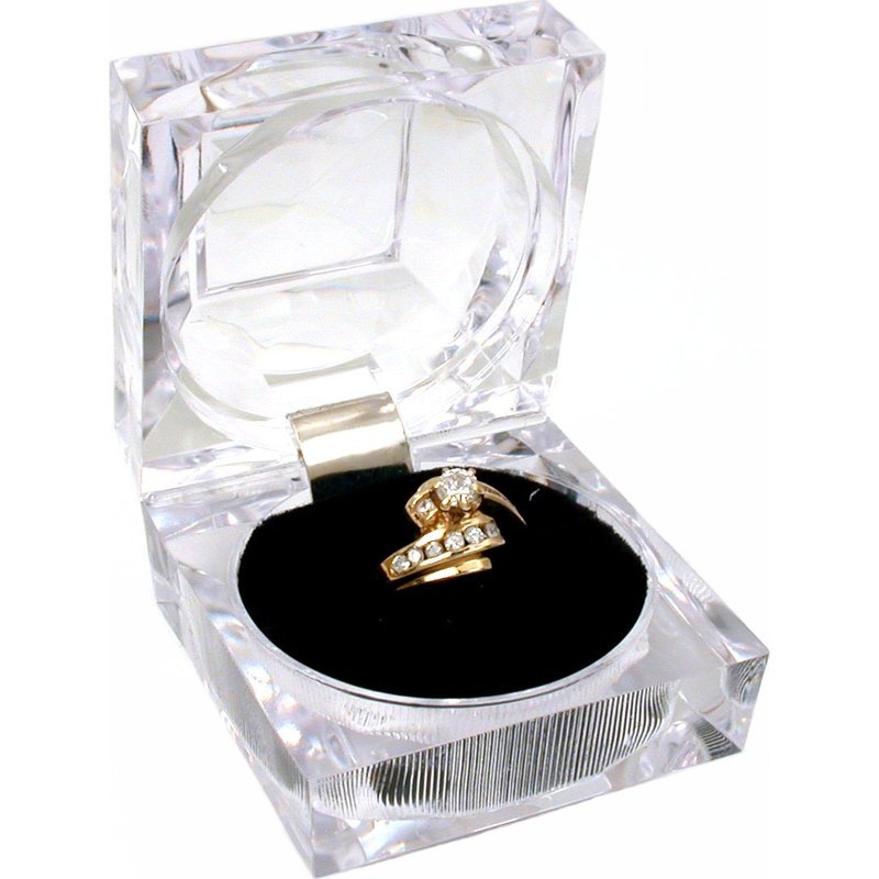 24 New Ring Boxes Large Mans Gift Jewelry Crystal 24 New large ring crystal clear box These ring boxes are for larger rings such as a man's ring but may also be used with woman's ring These boxes allow you to present jewelry in stylish boxes and are a long time favorite among customers The boxes are plastic with crystal accents and a black velvet insert Each box measures 1 7/8" x 1 7/8" x 1 3/4"