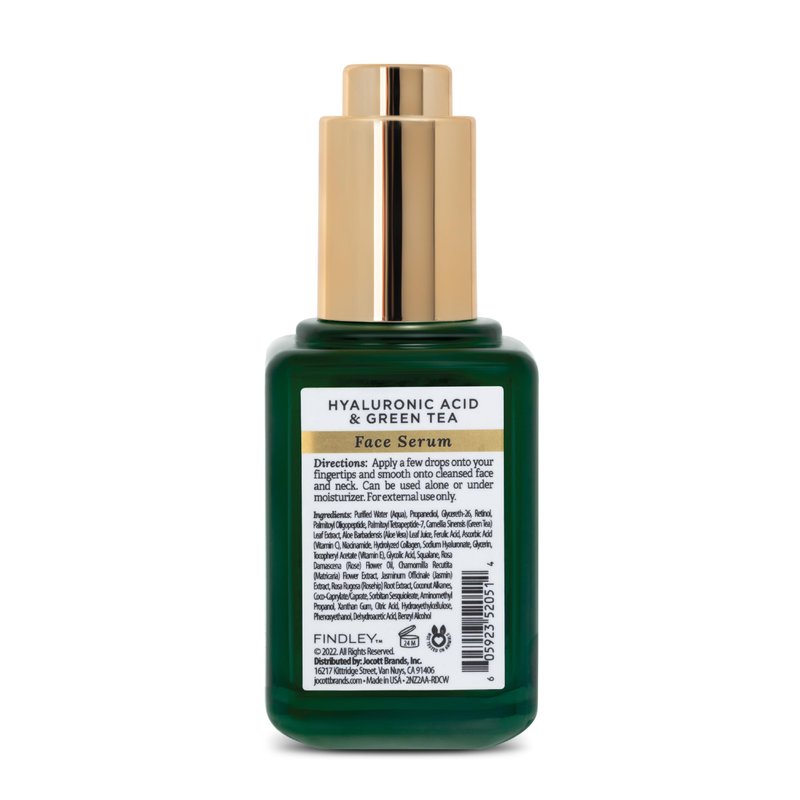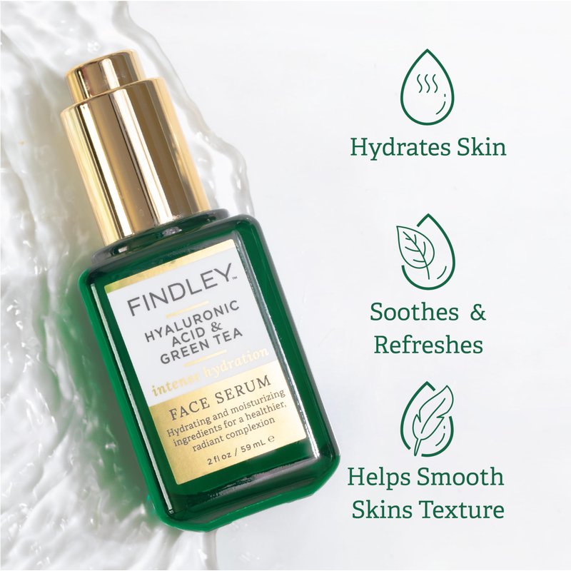 - FINDLEY HYALURONIC ACID & GREEN TEA INTENSE HYDRATION FACE SERUM (2 Fl Oz): Hydrating and moisturizing ingredients for a healthier, radiant complexion.