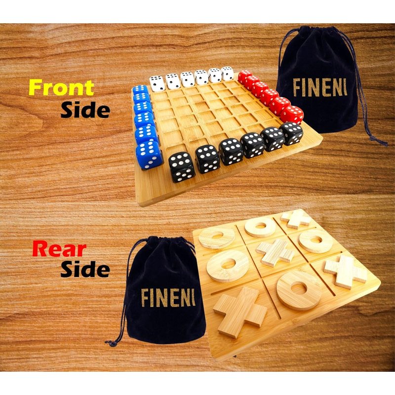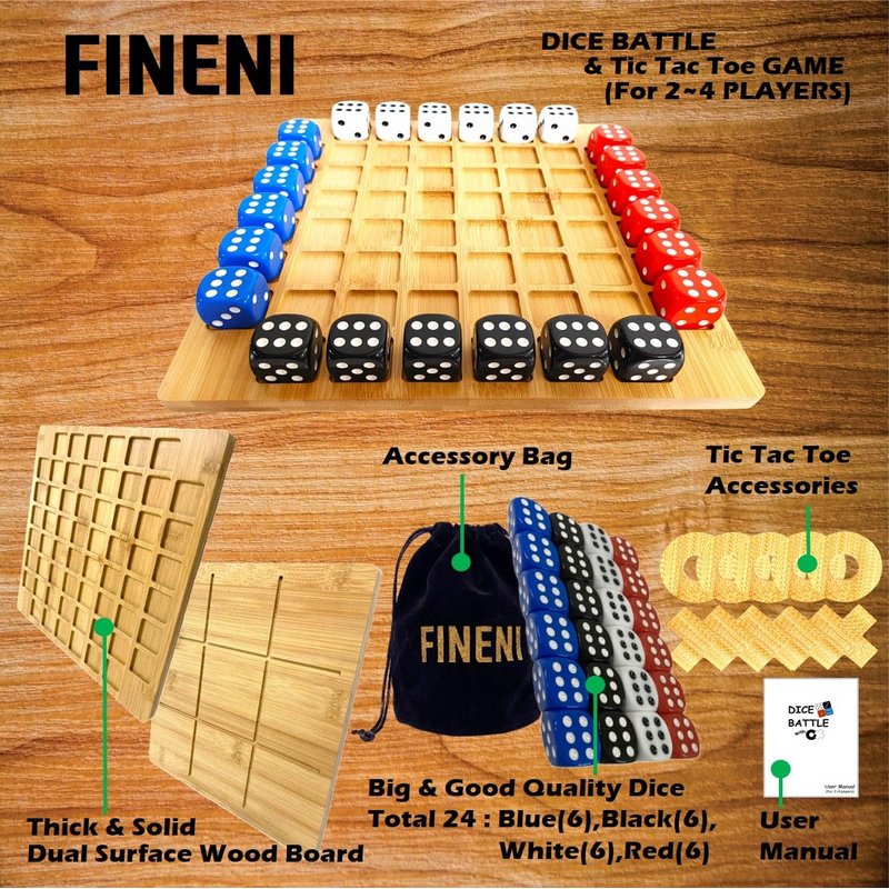 FINENI Dice Battle and TicTacToe Dual Sides Board Games, Wooden Coffee Table Games for Adults, 2~4 Player Bar Dice Games, Indoor Tabletop Game & 4 Players Wood Table Top Dice Game (Dual(2~4)/Log)