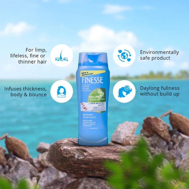 - VOLUMIZE THIN OR FINE HAIR: Finesse Volumize + Strengthen Volumizing Shampoo for thin hair, fine hair, limp hair or flat hair leaves hair looking and feeling full, silky soft, and clean, without being weighed down and without build up.