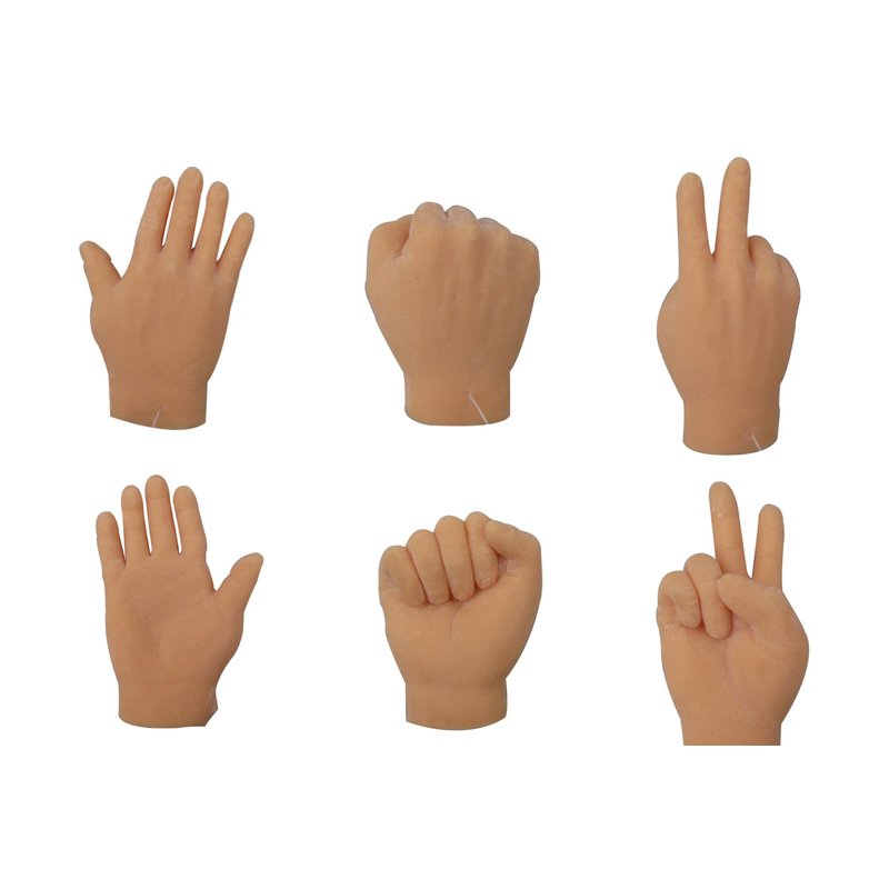 - Set of 6-You get 6 Tiny Mini Finger Hands-2 of Each Hand So That 2 People Can Play The Rock Paper Scissors Game Together